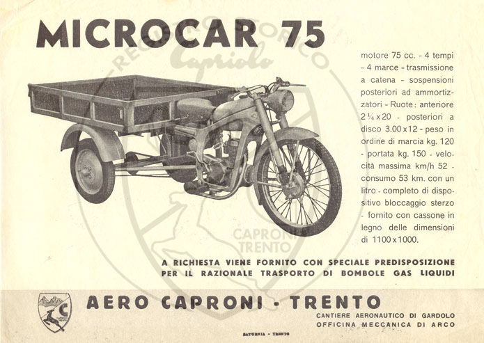 Del Capriolo 75 è stata realizzata anche una versione Motocarro, denominato “Microcar 75”.