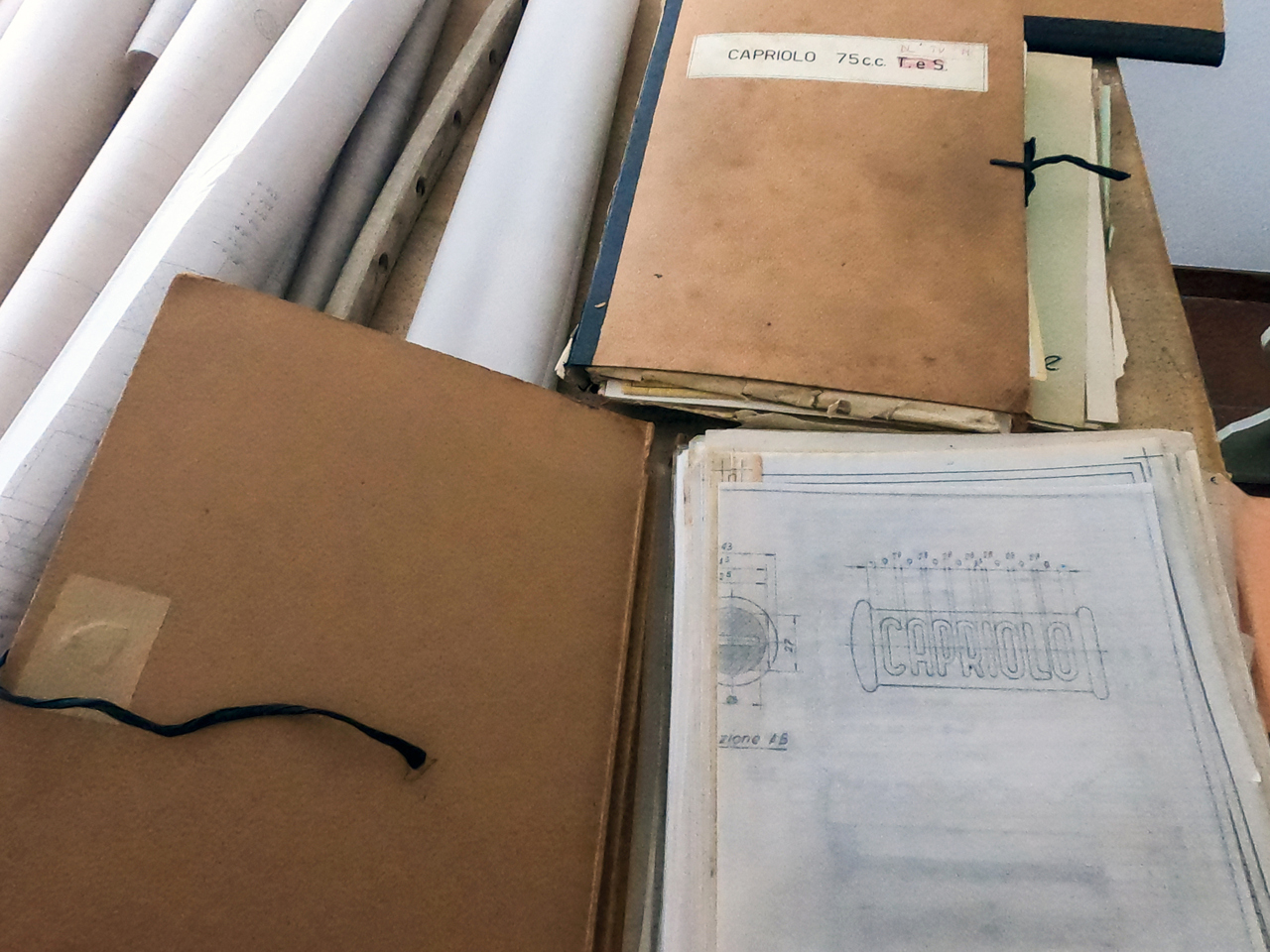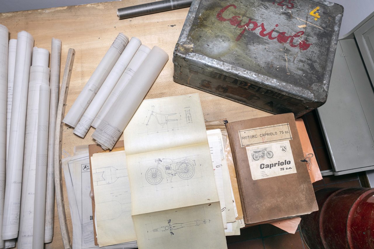 Sono tornati a Trento le migliaia di disegni e documenti originali della storica Fabbrica Aero Caproni (poi Aeromere) che nel 1963 erano volati negli Stati Uniti alla Cosmopolitan Motors di Philadelphia. Sono i progetti autentici dai quali sono state realizzate le mitiche “Capriolo”, le motociclette prodotte tra Arco e Gardolo di Trento negli anni ’50. Dai telai alle singole componenti dei motori, dalle relazioni tecniche alle prove su strada, ogni pagina ci restituisce il lavoro tanto creativo quanto preciso degli ingegneri, disegnatori, meccanici e collaudatori (Ing. Turazza, Ing.Volcan, Perini, Visconti e Venturelli)che in quegli anni hanno scritto la storia di questa gloriosa Motocicletta.