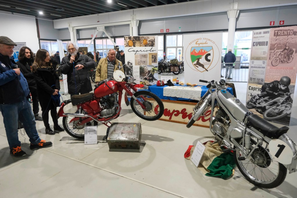 I primi anni ’50 hanno visto la nascita e quindi la produzione in serie presso gli stabilimenti di Trento e Arco della Aero Caproni S.p.a. di alcune splendide motociclette, come il Capriolo 75 e la Cento 50, che hanno riscosso, per le loro caratteristiche tecniche innovative e qualità, un grandissimo successo, sia commerciale che sportivo. Ricordiamo, fra le tante, le vittorie di categoria nella Milano-Taranto, nella 12 ore motociclistica di Imola, nel Moto Giro d’Italia, nella Trento-Bondone; ed ancora nelle Sei Giorni internazionali di Germania e Cecoslovacchia; fra i piloti, il romano Claudio Galliani, Guido Mariani, i trentini Iolao Strenghetto, Ludovico Facchinelli, Mario Nardin e Luigi Sester.