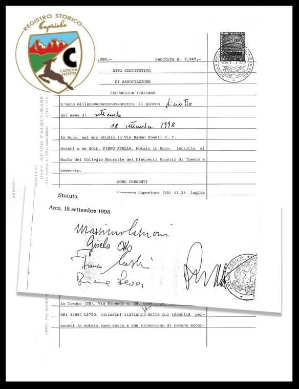 Il 18 settembre 1998 è stato ufficialmente costituito il Registro Storico Capriolo, con sede in Trento. L’associazione, nata per l’ispirazione ed il fondamentale impulso di Massimo Caproni è sorta per dare un concreto riscontro all’esigenza e alle esortazioni espresse da numerosi appassionati di moto d’epoca, ed in particolare, di un vasto gruppo di persone che hanno manifestato il desiderio di impedire che un importante momento della vita trentina, ampiamente significativo a livello sia nazionale che internazionale, fosse disperso e dimenticato.